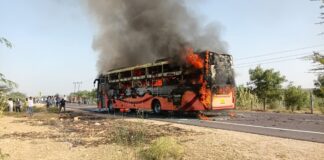 ভারতে চলন্ত বাসে আগুন, ২০ জনের মৃত্যু